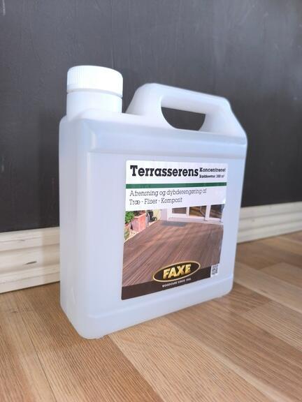 •  FAXE Terrasserens Koncentreret fortyndes med vand. 1 del produkt til 5 dele vand.